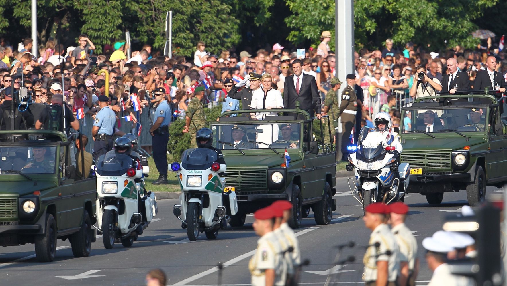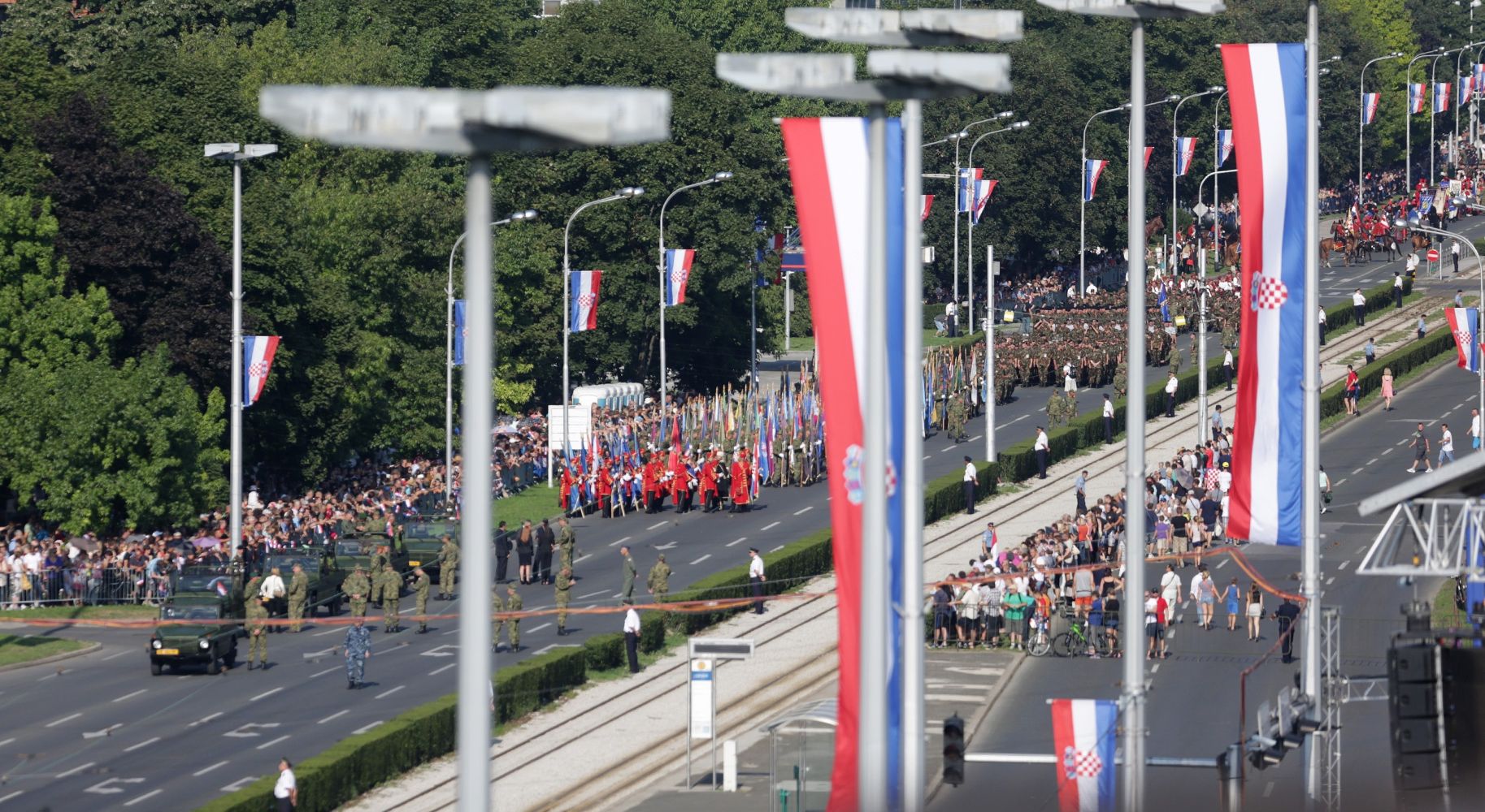 Povodom Dana pobjede i Domovinske zahvalnosti i Dana branitelja te 20. obljetnice vojno-redarstvene operacije „Oluja“, u Zagrebu je jučer održan svečani mimohod s oko tri tisuće sudionika i tristotinjak vozila te tridesetak zrakoplova. Kolona dulja od četiri kilometra prolazila je sat i pol zagrebačkom Vukovarskom ulicom, od Avenije Marina Držića do Savske ceste, a mimohod su došli pozdraviti mnogobrojni građani, posebno umirovljenici i roditelji s djecom.