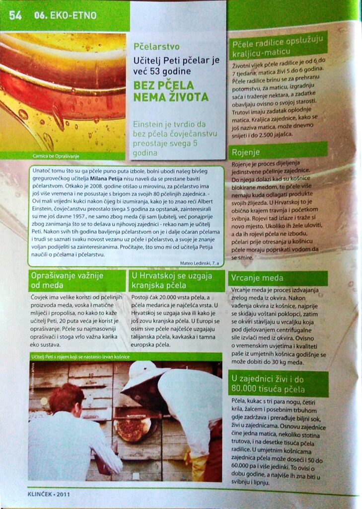 Osim što je bio dobar učitelj, učitelj Peti bio je i strastveni pčelar. O tom njegovom hobiju, učenik Mateo Ledinski pisao je u broju iz 2011.