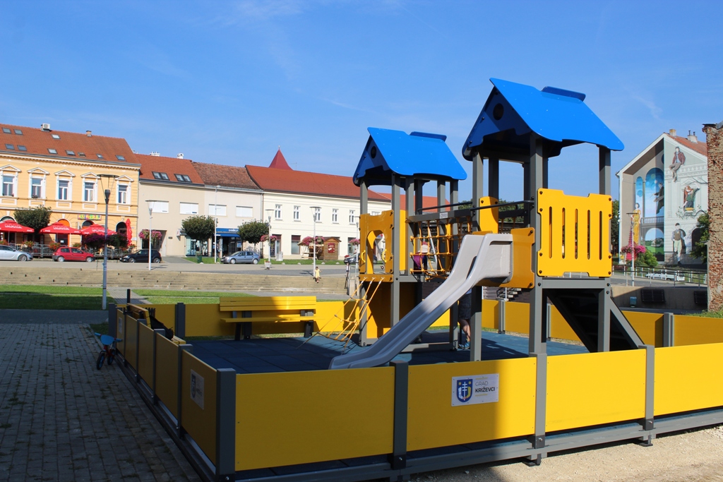 Ovih dana postavljeno je montažno dječje igralište na trgu Josipa Jurja Strossmayera, pokraj Turističkog informativnog centra. Tom prilikom, gradonačelnik Mario Rajn kazao je kako Grad Križevci ponosno nosi titulu Grada prijatelja djece i ovo igralište je još jedan dokaz tome. Kroz niz sugestija o nedostatku sadržaja na glavnom gradskom trgu koje su uputili građani, postavljeno je montažno igralište kako bi dodatno revitalizirali i oživili gradski trg. Grad je posvećen mladima i djeci pa je i cilj da se što više mladih obitelji i djece zadržava na trgu i dobiva sadržaje koji traže.