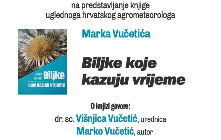 Ogranak Matice hrvatske u Križevcima i Visoko gospodarsko učilište u Križevcima pozivaju u četvrtak 18. ožujka 2021. u 17 sati na predstavljanje knjige uglednoga hrvatskog agrometeorologa Marka Vučetića Biljke koje kazuju vrijeme.