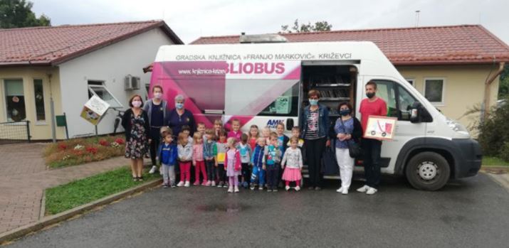 Pored toga, bibliokombi obilazi Dječji vrtić Zraka sunca i Dječji vrtić Križevci svakog drugog četvrtka po sat vremena, dok Dječji vrtić u općini Sv. Ivan Žabno obilazi utorkom. Slikovnice koje djeca posude koriste u svojoj odgojnoj grupi u vrtiću i vraćaju na idućem dolasku. Time se u suradnji s odgojiteljicama djeca navikavaju na posudbu, korištenje, čitanje i čuvanje slikovnica i knjiga za djecu. Ovom akcijom i suradnjom sa vrtićima upisali smo ukupno 226 novih članova.