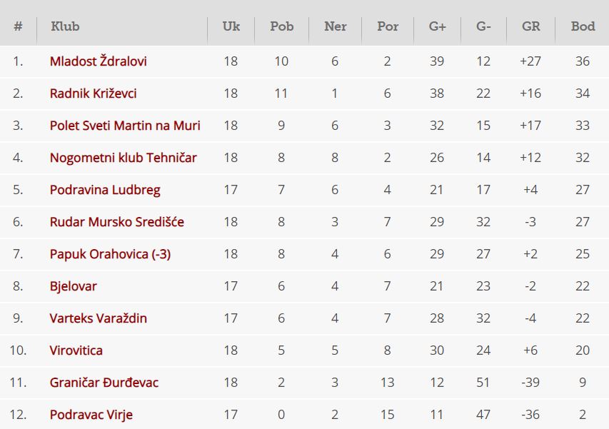 Ovom pobjedom križevački su se nogometaši probili na 2. mjesto prvenstvene ljestvice nakon što je Polet remizirao u Virovititi. Vodeća je Mladost iz Ždralova s dva boda prednosti ispred Radnika.