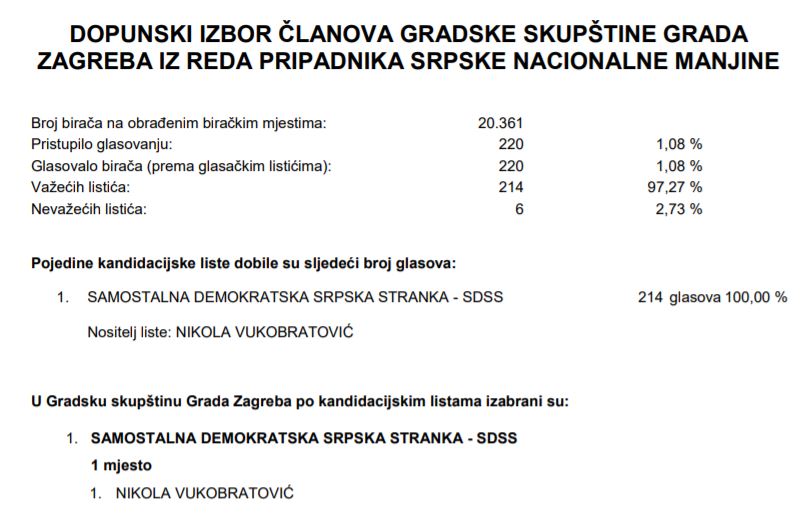 Vukobratović je na nedjeljne izbore izašao kao nositelj liste Samostalne demokratske srpske stranke, a s obzirom na to da nije imao protukandidata, bilo je jasno i prije brojanja glasova kako će postati novi član Gradske skupštine Grada Zagreba.