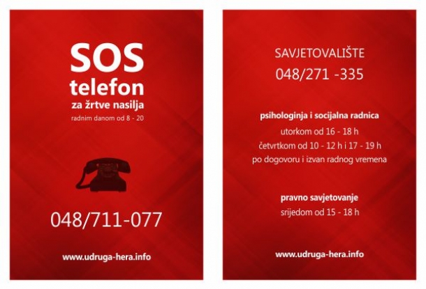 Udruga HERA Križevci traži volontere i poziva sve zainteresirane osobe da se prijave na volontiranje za rad na SOS telefonu koji je namijenjen pružanju pomoći ženama žrtvama nasilja i žrtvama obiteljskog nasilja. Budući volonteri moraju biti punoljetni, motivirani za pomoć drugima, odgovorni i ozbiljni s razvijenim komunikacijskim i socijalnim vještinama koji imaju interes raditi s osobama svih životnih dobi i socijalnih statusa.