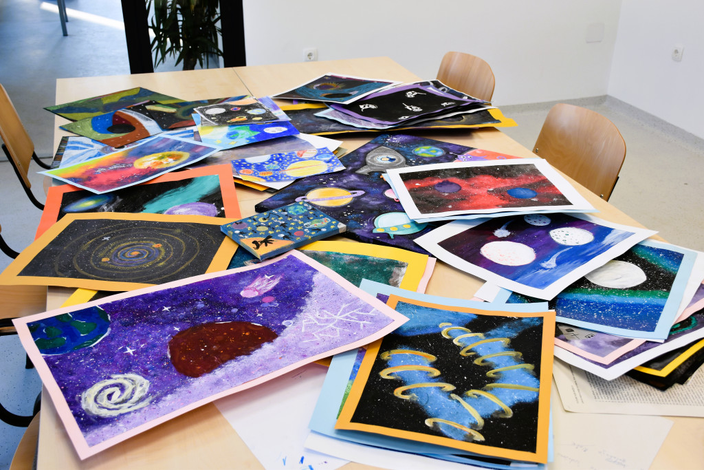 Na natječaj “Kako zamišljam svemir” u proteklih je nešto više od mjesec dana u društveni centar Future Hub Križevci stiglo točno sto radova učenika križevačkih osnovnih škola “Vladimir Nazor” i Ljudevita Modeca te “Grigor Vitez” iz Svetog Ivana Žabno i škole Sveti Petar Orehovec. Zadatak im je bio izraziti slikom ili riječju kako zamišljaju svemir, neotkrivene svjetove, galaksije, zvijezde ili crne rupe. Pritom uopće nije bilo važno kako svemir uistinu izgleda, važna je bila – mašta.
