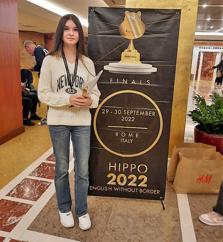 Polaznica Škole za strane jezike “Nika” Vedrana Podravec vratila se kao sedma na svijetu s natjecanja iz engleskog jezika HIPPO, koje je održano prošli tjedan u Rimu. Do finala je došla u kategoriji HIPPO 3 u kojoj je bila i najmlađa predstavnica, a ukupno se na više razina natjecalo 65 tisuća djece iz 55 zemalja, među kojima samo iz Hrvatske 6500 učenika iz 170 škola.