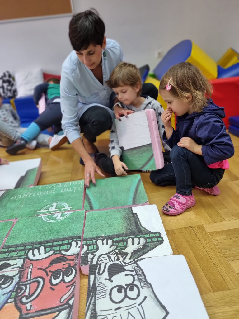 Da vrećica od bonbona i kora od banane ne idu u isti spremnik, učili su danas vrtićanci iz Centra za odgoj, obrazovanje i rehabilitaciju Križevci na eko radionici „Igrom do zelenih Križevaca“. Dijana Mijač Dretar i Nikolina Stipić iz Komunalnog poduzeća Križevci pokazale su im kakve sve vrste spremnika postoje, a djeca su, kroz zabavne i edukativne aktivnosti, naučila kako pravilno odvajati otpad te što nije dobro i zdravo za našu Zemlju.