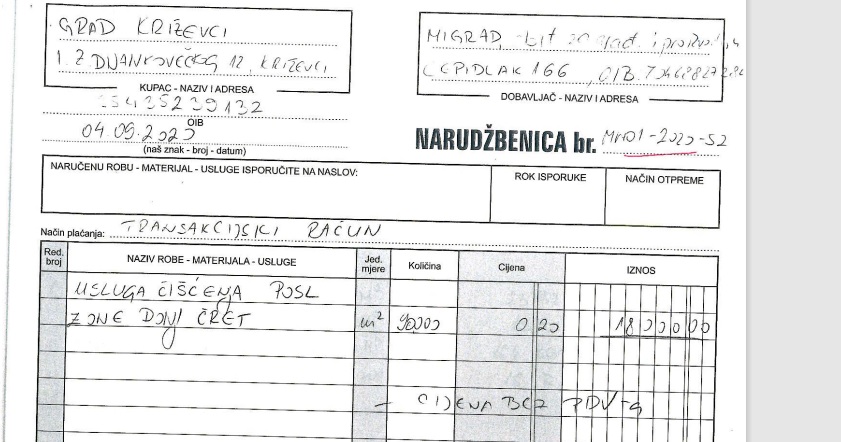 Podsjetimo, Novosel je ranije dobio dva spora protiv Grada Križevaca koje je pokrenuo zbog smetanja posjeda na gradskoj parceli koju je imao u zakupu i na njoj je sijao kukuruz. Po pravomoćnoj presudi tražio je naknadu štete i u toj parnici sud je presudio u njegovu korist. Sporna je sezona 2020. kad je na toj parceli žetvu obavio obrt Migrad, po nalogu Grada od 4. rujna 2020. Isti dan kad je naručeno „čišćenje“, Migrad je (navedeno je tako u presudi za smetanje posjeda koju je Grad pravomoćno izgubio) počeo strojno brati kukuruz s parcele u Gornjem Čretu i voziti je u bioplinaru u Rovišću, makar na narudžbenici piše da se traži „čišćenje poslovne zone Donji Čret“. I taj posao plaćen je iz gradskog proračuna po cijeni bez PDV-a od 18 tisuća kuna, ali i kukuruzom jer Grad nije uprihodio ništa od prodaje silaže bioplinari.