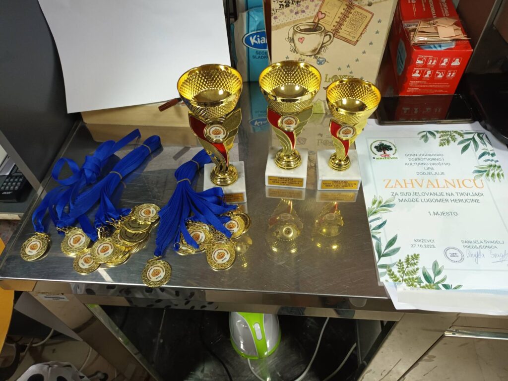 Dok je žiri detaljno pregledavao radove, djeca su crtala tikve i slušala priče. Vrijedni domaćini pripremili su i slastice od tikve, a pokalima, medaljama, slikovnicama i slatkišima su nagradili i najljepše crteže i najljepše tikve. Prvo mjesto osvojila je Udruga Maslačak, drugo 1. c OŠ Ljudevita Modeca s učiteljicom Sandrom Maurović, treće mjesto 2. d OŠ “Vladimir Nazor” s učiteljicom Moni Harča. Najljepši crtežž napravio je David Matešić iz 2. a OŠ Ljudevita Modeca.
