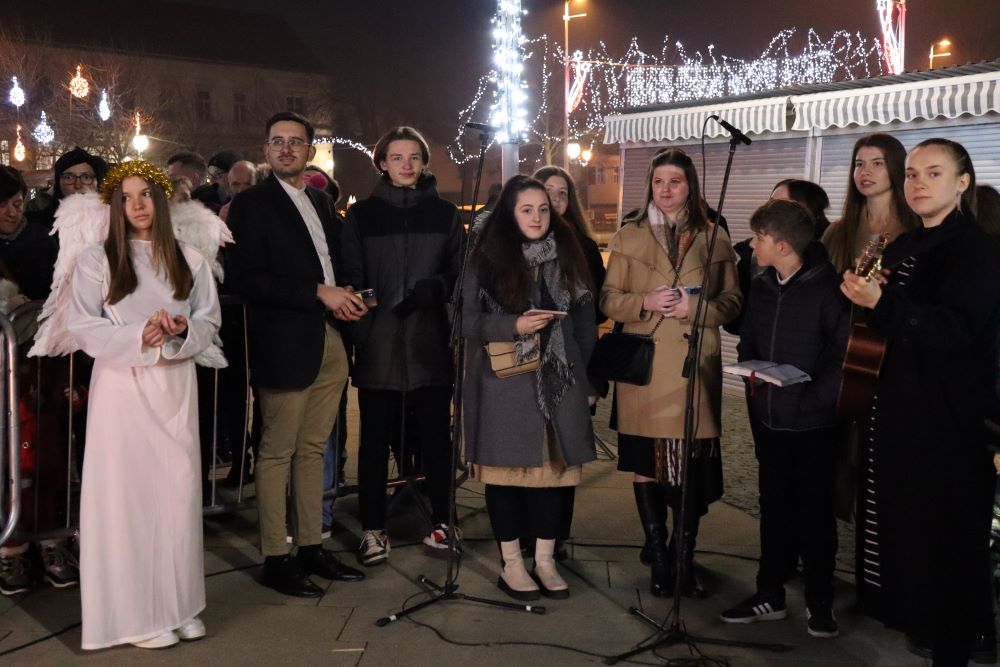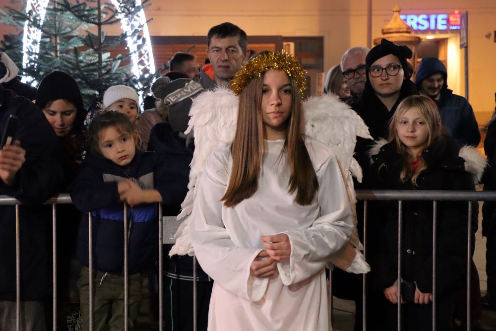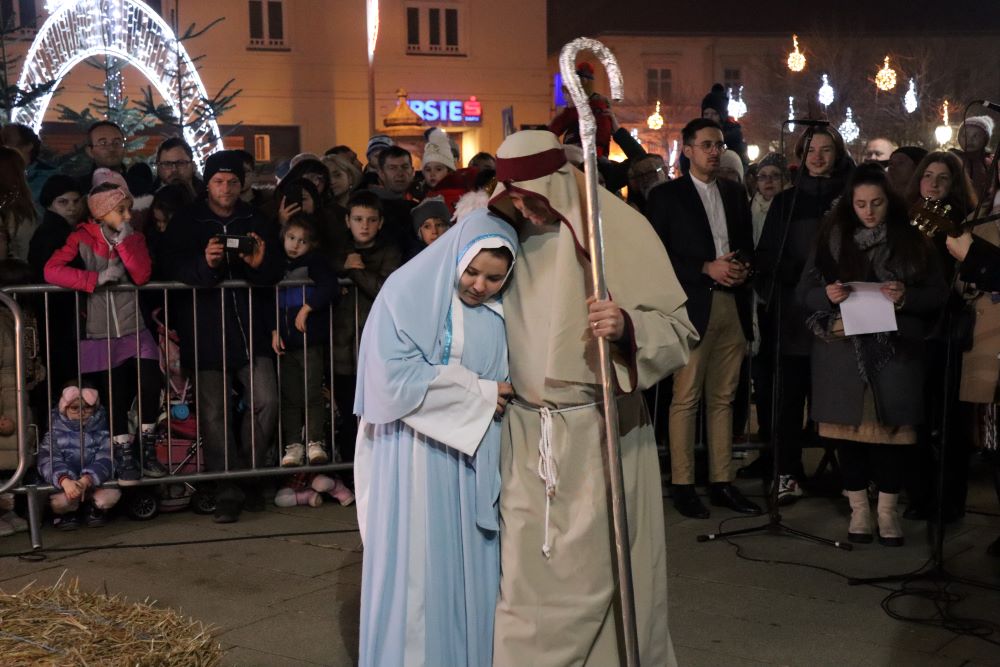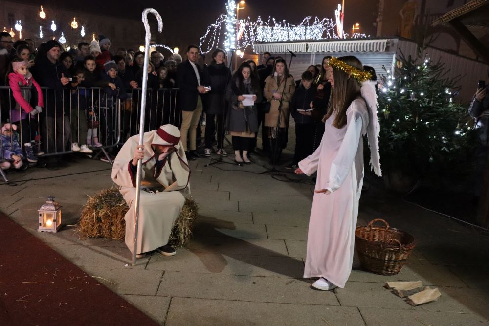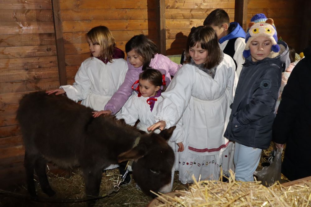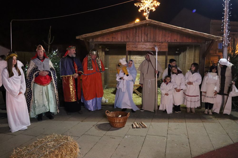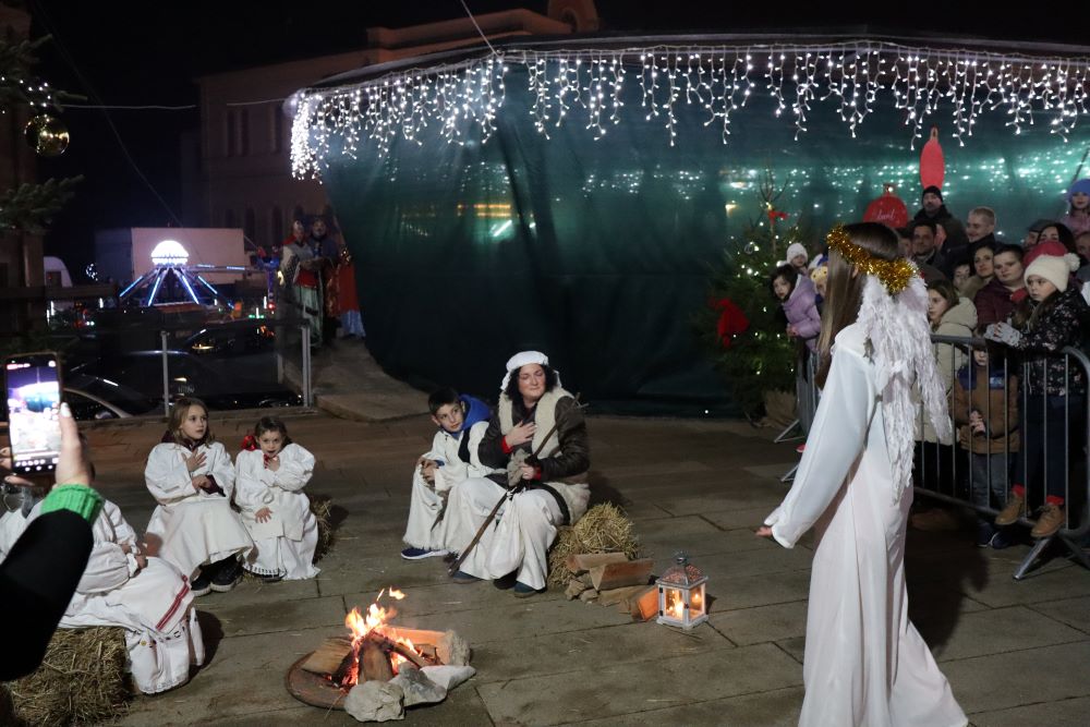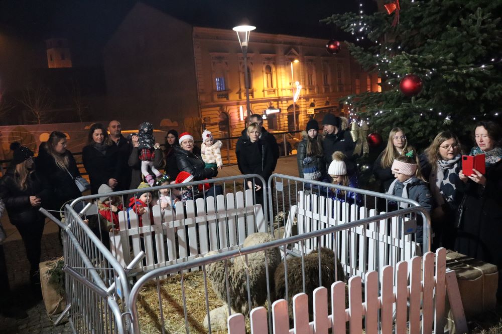 Sinoć su na križevačkom Strossmayerovom trgu nakratko oživjele jaslice. Sudjelovali su članovi Gornjogradskog dobrotvornog i kulturnog društva Lipa, Kud Križevci, Paviljon za djecu “Sv. Marko Križevčanin“ i Zbor mladih “Crisinus”. U štalici su bile i životinje, magarac, ovce i dva mala janjeta koji su na gradski trg stigli iz obrta Mali zeleni i s OPG-a Josipe Horvat Pugar.
