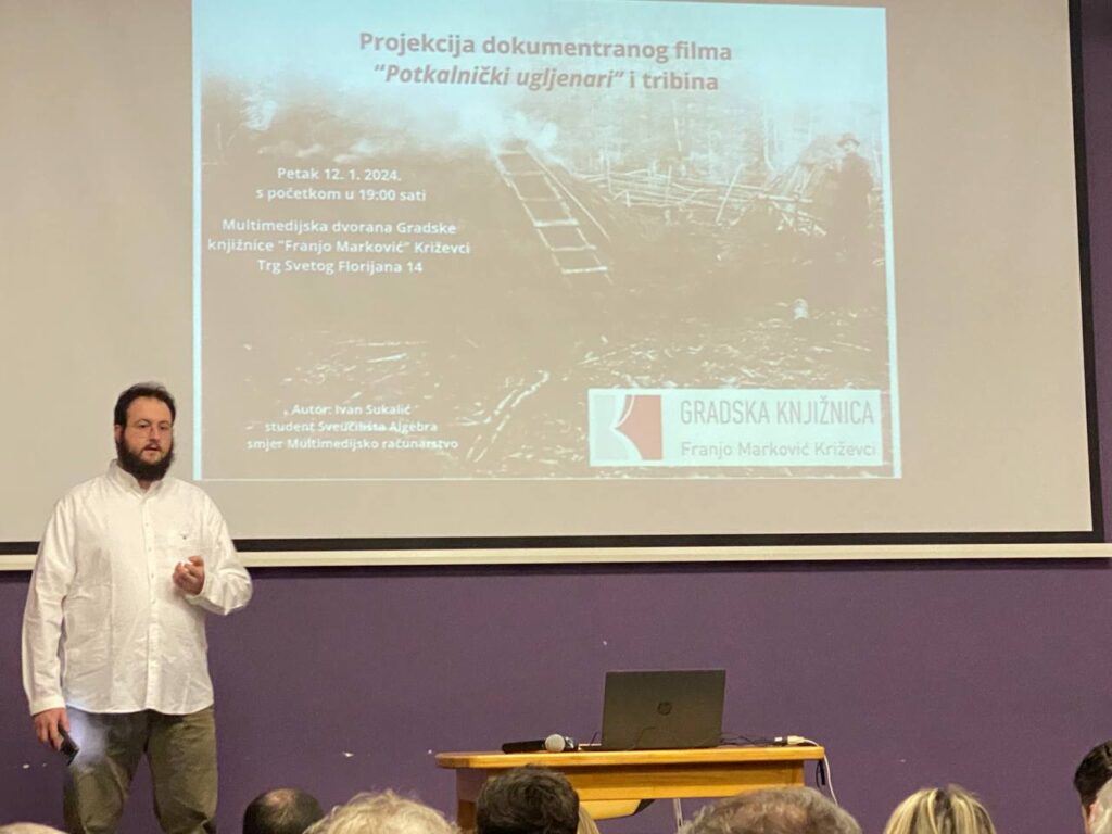 U petak, 12. siječnja 2024. godine u multimedijskoj dvorani Gradske knjižnice “Franjo Marković” u Križevcima je održana premijerna projekcija dokumentarnog filma “Potkalnički ugljenari” mladog autora Ivana Sukalića. Prepuna dvorana Gradske knjižnice uživala je u 45-minutnoj priči o izumirućem obrtu proizvodnje drvenog ugljena u vuglenicama, kakvih je nekad bilo mnogo u selima podno Kalnika. Križevčanin Sukalić student je Sveučilišta “Algebra”, a ovaj mu je debitantski filmski proizvod dio završnog rada na smjeru Multimedijsko računarstvo.