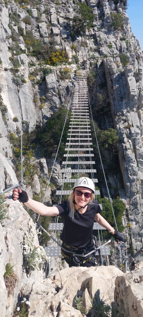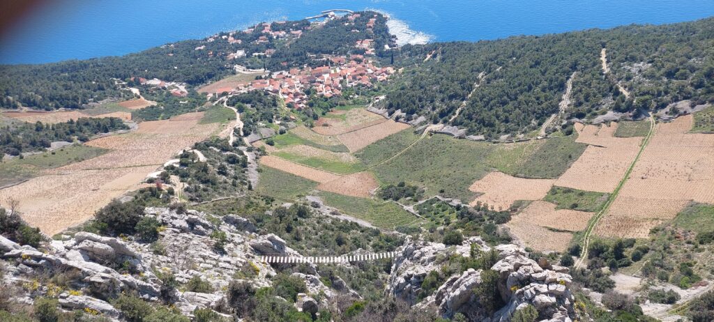 Planinarsku stazu izabrao je veći dio ekipe, dok se njih dvadeset dvoje jakog srca i čvrstog želuca odvažilo na uspon feratom, preko malih uskih stuba uklesanih u stijenu i metalnog mosta koji se ljulja visoko nad naseljem. Iako za penjanje feratama nije potrebno prethodno iskustvo, osim obavezne opreme treba imati i hrabrosti. Ova hvarska je ukupno duga 250 m, no baš taj viseći most ni iskusne alpiniste ne ostavlja ravnodušnima. “Prolazak mostom nije bio obavezan, on je kao adrenalinska atrakcija jer s njegove druge strane staza ne vodi dalje. No naši planinari su se odvažili i isprobali ga, i to dvaput jer su se istim putem morali i vratiti. Dobra je to vježba za suočavanje sa strahom od visine, pogotovo za one koji dosad nisu prošli puno ferata“, rekao nam je planinar Zlatko Mustić.