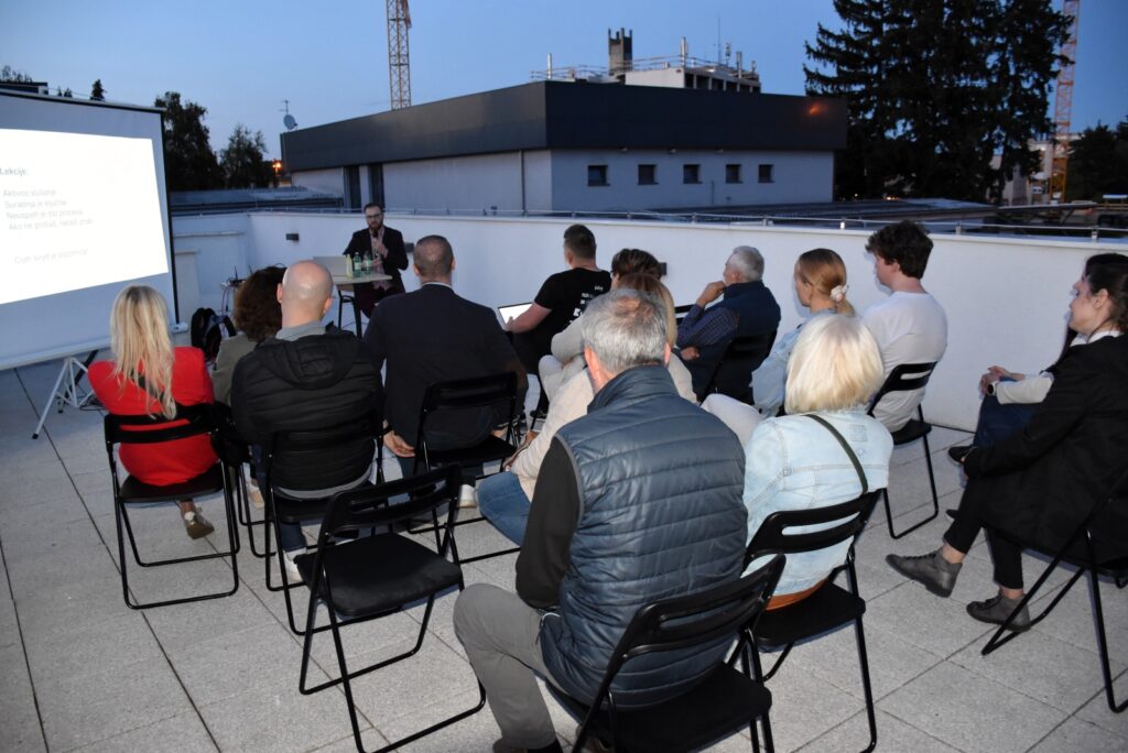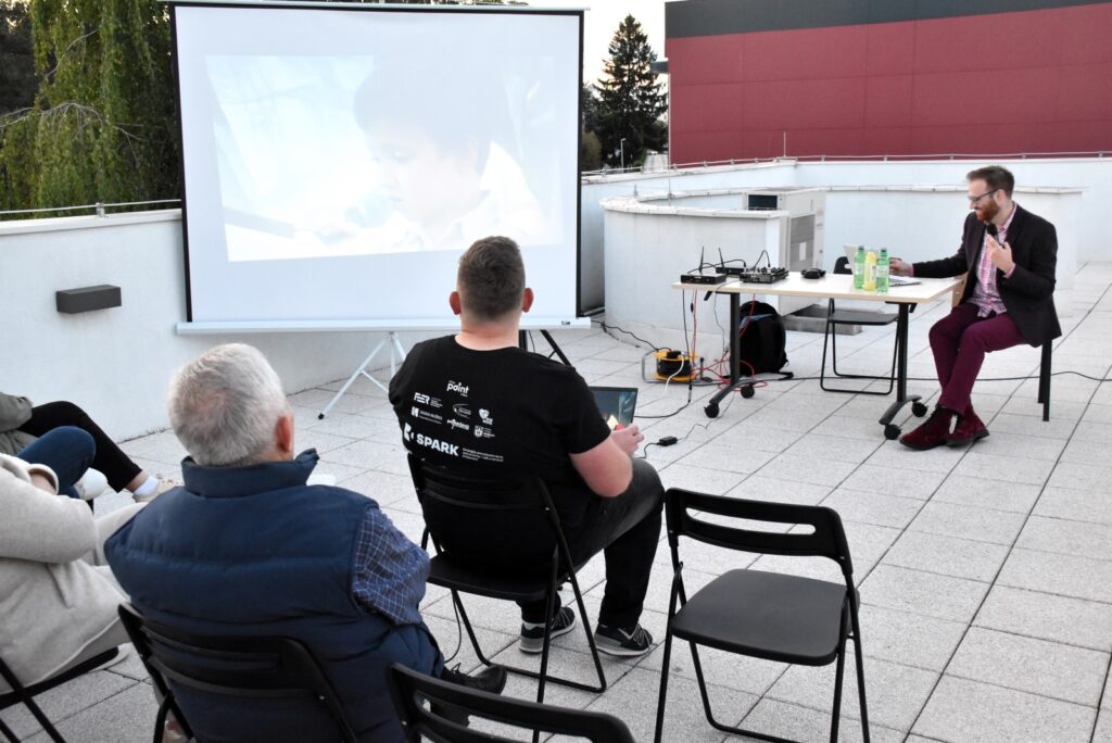 U dinamičnom, slikovitom i vrlo nadahnutom predavanju, za koji je uvod dala članica udruge P.O.I.N.T. Sonja Mrnjavčić, Martinčić je govorio o odlasku u Englesku sa 16 godina zahvaljujući stipendiji Foruma za slobodu odgoja, maturiranju i upisu fakulteta, poziciji predavača na kolegijima drame i kazališnih studija, dolasku na novi fakultet, držanju seminara brucošima kao asistent, predstavljanju svih postdiplomskih studenata na fakultetu, početku istraživanja i pisanju doktorske disertacije, koju trenutno završava na Sveučilištu u Exeteru.