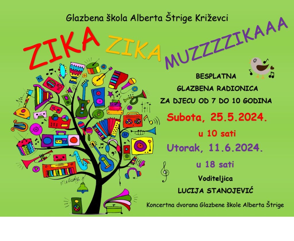 Jedina škola u gradu u kojoj nije poželjna tišina, Glazbena škola Alberta Štrige, poziva djecu od 7 do 10 godina na besplatnu radionicu na kojoj će naučiti nešto novo, dobro se zabaviti, a možda će ih i potaknuti na upis u Glazbenu. Voditeljica je svestrana glazbenica Lucija Stanojević, a za sudjelovanje nije potrebna prethodna prijava, samo dobra volja.