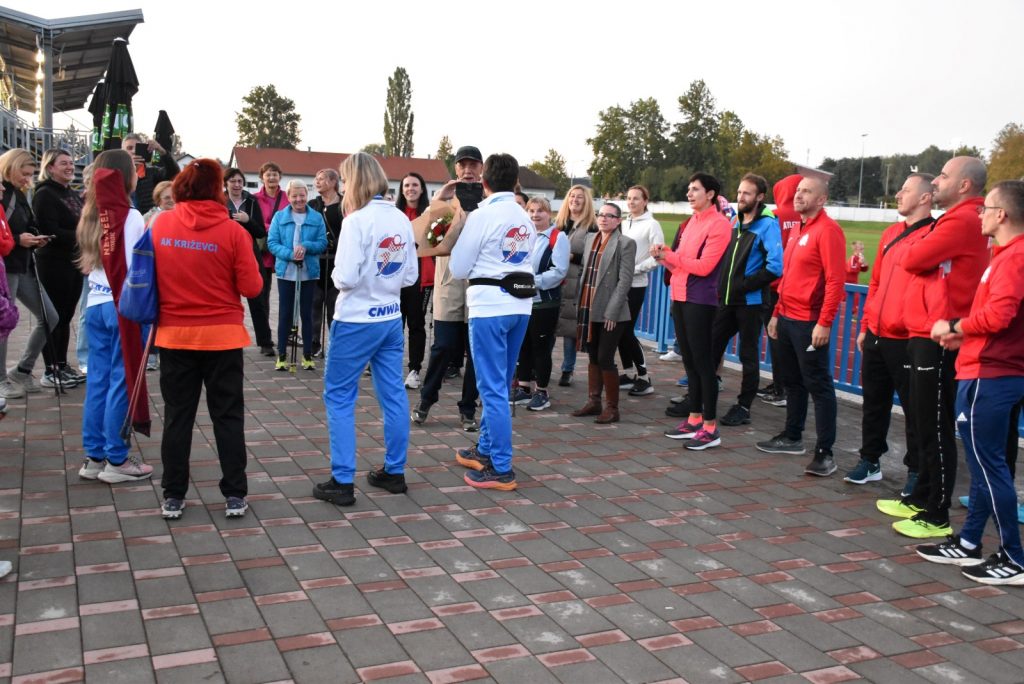 Članovi Škole trčanja i nordijskog hodanja AK Križevci priredili su večeras doček za svoje klupske kolegice Vesnu Sokač, Tamaru Pap i Melitu Brunović Čondić koje su s reprezentacijom Hrvatske osvojile četiri medalje na Svjetskom prvenstvu u nordijskom hodanju, koje se proteklog vikenda održavalo u Lahtiju u Finskoj. Ukupno su osvojile tri zlata i jednu broncu u disciplinama na 5 i 10 km te u štafeti 4×5 km.