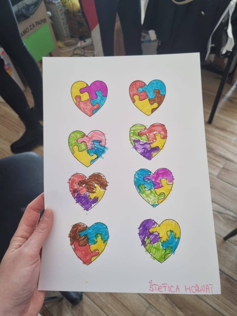 Povodom Svjetskog dana svjesnosti o autizmu članovi Udruge “Maslačak” jučer su sudjelovali u kreativnoj radionici u suradnji s kreativnom skupinom Gimnazije Ivana Zakmardija Dijankovečkoga i pedagoginjom Mirelom Babić. Kroz prilagođene kreativne radionice Maslačci su zajedno s učenicama izrađivali prigodne privjeske, vježbali finu motoriku, maštu i kreativnost, ali i razvijali osjećaj vrijednosti, pripadnosti, timskog rada i zajedništva.