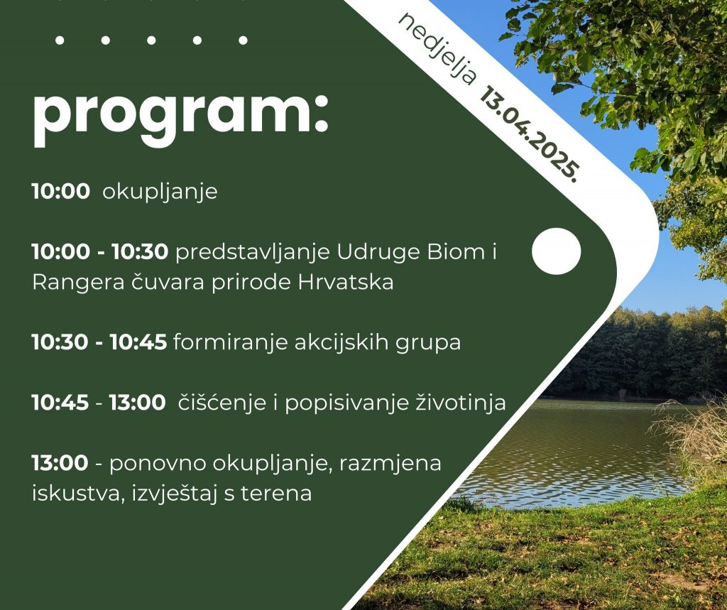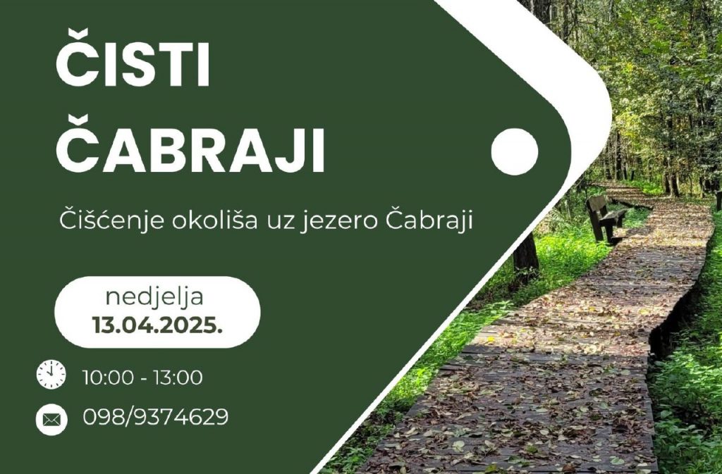 U nedjelju, 13. travnja, od 10 do 13 sati održat će se čistka i druženje pod nazivom Čisti Čabraji – zajednička akcija za prirodu! Radi se o akciji čišćenja okoliša uz jezero Čabraji – zaštićene prirodne oaze i važnog močvarnog staništa.