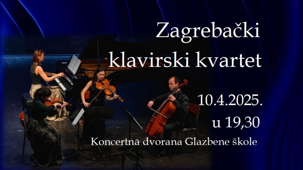 Glazbena škola Alberta Štrige organizira još jedan koncert klasične glazbe na kojem će u četvrtak 10. travnja u 19:30 u koncertnoj dvorani škole nastupiti Zagrebački klavirski kvartet. Na programu je Mozartov Klavirski kvartet u g-molu, Mahlerov Klavirski kvartet u a-molu te Klavirski kvartet u d-molu Dore Pejačević.