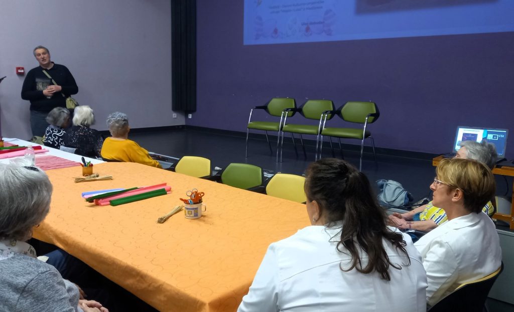 Radili su se vjenčići od grančica bršljana, vrbe, breze i pleli s cvijećem koje su polaznici sami izradili od krep papira. Dok su marljive ruke polaznika radile ukrase, članice Udruge “Magda i Luisa” prikazale su kratku predstavu “Dari letne večerke”.