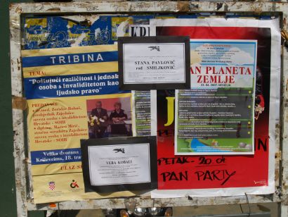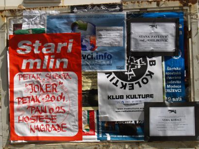 Dodajmo da se trenutnom manjku oglasnih površina u samom središtu grada doskače i tako da se obljepljuje daščani zid uz trošnu zgradu pored radija, gdje nema zabrane plakatiranja, međutim svakog jutra plakati i otamo nestaju i ostaje tek blijeda reklama vlasnika zgrade.