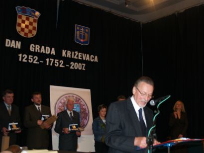 Uime dobitnika pismenih priznanja i plaketa Grada za 2007. godinu, zahvalio je prof. Slavko Balog, koji je ove godine ovjenčan nagradom za životno djelo, prvom te vrste u Križevcima. Balog, koji je grad zadužio kao prosvjetni, kulturni i sportski radnik te varoški sudac, u nadahnutom je govoru između ostalog rekao da je "život koji prolazi bez aktivnosti kao čekanje vlaka na napuštenom kolodvoru".