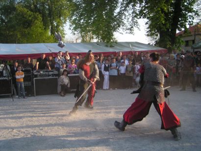 U ovom malom povijesnom spektaklu na Đurđevo, koje je ove godine upriličeno kao uvertira u Križevačko veliko spravišče, aktivno je sudjelovao i kostimirani gorjanski puk, koji je bučnim parolama odobravanja i negodovanja pratio banove svečane riječi. Silaskom bana Stjepana s trona uslijedilo je opće veselje s višesatnim kulturno-umjetničkim izražavanjem te kraćom viteškom igrom i borbom vitezova iz Udruge braće srebrnoga zmaja u srednjovjekovnim odorama.