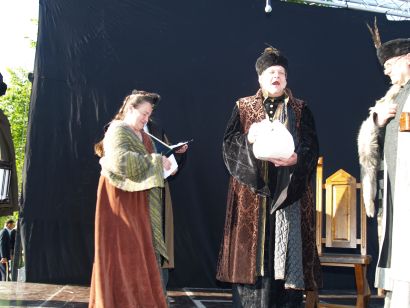 Kao ban s plemićkim i cifrastim obilježjima umjesto najavljenog Zlatka Viteza nastupio je Zvonimir Zoričić, dok mu je uz bok na susjednom tronu bio gorjanski starješina kojeg je odigrao Ivan-Ivec Tomić. On mu je uime stanovnika Gornjega grada i zahvalio na darovanim povlasticama, a Branka Gold iz društva Lipa banu je uručila gorjanski pinklec, vrijedni suvenir pun križevačkih proizvoda – pogače, špeka, meda, lipova čaja i štrukla.