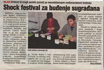 Prošlogodišnji Culture Shock Festival bio je realiziran preko platforme Clubture, uz financijsku podršku Nacionalne zaklade za razvoj civilnog društva, Ministarstva kulture, Ministarstva znanosti, obrazovanja i športa, zagrebačkog Ureda za obrazovanje, kulturu i šport, Europske kulturne fondacije, Koprivničko-križevačke županije i Grada Križevaca. Nažalost, ovakva pozamašna podrška ove godine djelomično izostaje, no unatoč tome organizatori – udruge P.O.I.N.T. i K.V.A.R.K., najavljuju možda i programski najjači festival ove godine.