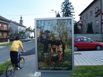 Priča prva. U petak 27. travnja u Križevcima je postavljen tzv. jumbo plakat, s jednim od motiva izložbe, fotografijom dva muškarca. Plakat se nalazi na tratini prema željezničkom kolodvoru, a vidljiv je iz pravca kolodvora. Tako bi glasio opis najava, no neće. Zašto? Plakata više nema.