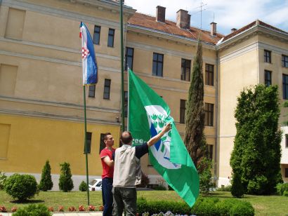 Učenici Ivana Kulko i Damjan Tkalec danas su primili Zelenu zastavu kao znak da je njihova Osnovna škola Vladimir Nazor iz Križevaca jedna od dvjestotinjak hrvatskih eko škola, koje sustavno rade na obrazovanju i odgoju djece za očuvanje i zaštitu okoliša. Na prigodnoj svečanosti povodom Dana škole zastavu im je predao gradonačelnikov izaslanik pročelnik Mladen Tenodi, a o značenju Eko škole govorio je dr. Ante Kutle, predsjednik Pokreta prijatelja prirode Lijepa naša, koji dodjeljuje status Eko škole.