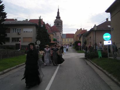 Uvod u scenski prikaz nastajanja Križevačkih štatuta bila je povorka sudionika Spravišča, glumaca i glazbenika, koja je prošla gradom od Trga sv. Florijana do Trga bana Lackovića i pozornice Spravišča, među koje se "ubacila" i Crna kraljica Barbara Celjska. Svi će oni također danas sudjelovati u pomiribi križevačkih purgera i kalničkih šljivara, spelanciji prema Križevačkim štatutima.