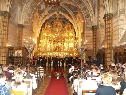 Niti pola sata kasnije, izniman glazbeni doživljaj zbivao se u grkokatoličkoj katedrali Presvetog trojstva u križevačkom gornjem gradu. Svoj su koncert, nakon nekoliko godina stanke pjevanja na Spravišču, imali članovi muškog vokalnog ansambla "Ivan Goran Kovačić" iz Zagreba.