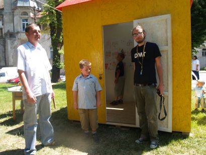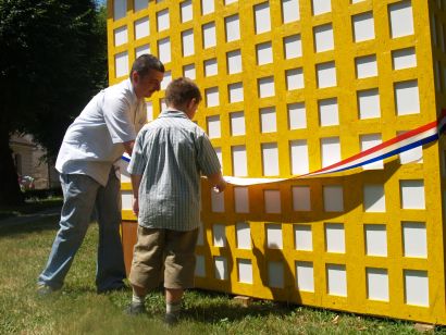 Osmogodišnji FIlip Pečarić, učenik 1. a razreda Osnovne škole Ljudevita Modeca iz Križevaca danas je rezanjem vrpce otvorio Kunsthalle, mali umjetnički paviljon. U parku kod crkve sv. Save, nasuprot Hrvatskoga doma i Kluba kulture postavljena je žuto-crvena kućica duga 2,3 a visoka 2,7 metara.
