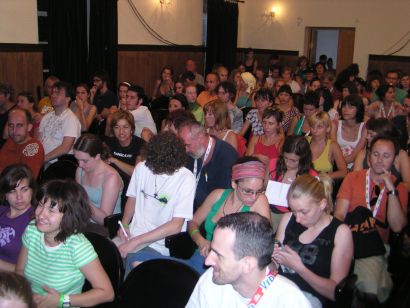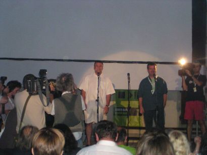 U istoj sali sa otprilike sto sjedala i točno u podne slijedi projekcija, prije glavnog filma kao uvod je kraće djelo iz ciklusa Motovun Online. U ponedjeljak su u 12 išli vojvođanski i na hrvatski neprevođeni Pop Ćira i Pop Spira a jučer smo bili na Doručku s đavlom. Već se ovdje susrećemo i s članovima žirija Festivala, uz stalno prisutne celebritije iz novinarskog miljea povezanog s filmom, poput Pavičića, Polimca i Tomića.
