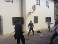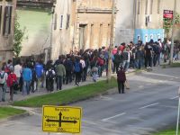 Stanovnike Tomislavove ulice jutros je iznenadila kolona mladih ljudi koja se puzeći kretala prema središtu grada. To su bili učenici Nadbiskupske klasične gimnazije iz Zagreba, njih oko pet stotina, koji su sa Željezničkog kolodvora s profesorima dolazili u posjet Križevcima. Četa katolika-đaka u jednom danu obići će naše kulturne, povijesne i sakralne znamenitosti i na kraju te turističko-obrazovne ture biti počašćena ručkom. Odlazak istim smjerom prema vlaku za Zagreb zakazan je za 17 sati. Grupu đaka snimili smo pred Gradskim muzejem kako se, očito u predahu razgledavanja, igra balonom.