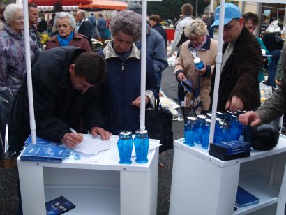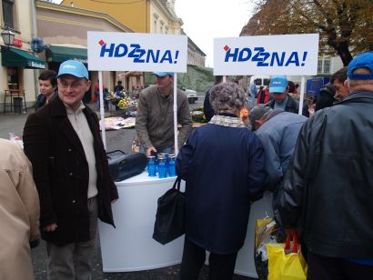 Građani Križevaca danas su prijepodne na glavnom gradskom trgu potpisom mogli podržati predsjednika Hrvatske demokratske zajednice i hrvatske Vlade Ivu Sanadera i pritom dobiti predmet koristan za nadolazeći blagdan Svih svetih.