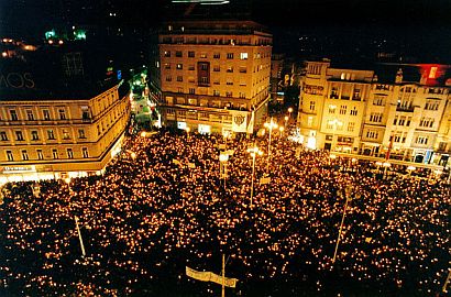 "Pogledajte kako sloboda radosno izgleda!" – riječi su danas pokojnog Vlade Gotovca koje su zaorile nad okupljenom svjetinom na zagrebačkom Trgu bana Jelačića u četvrtak 21. studenog 1996. godine. Te nezaboravne večeri preko sto dvadeset tisuća građana Hrvatske prosvjedovalo je protiv gašenja Radija 101 i upaljenim svijećama usprotivilo se odluci HDZ-ove vlasti o ukidanju koncesije Stojedinici.