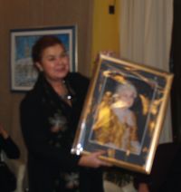 Jučerašnja večer tako je i bila po njezinoj mjeri, nekoliko je skladbi, svirajući gitaru otpjevala kantautorica Lidija Bajuk, Vlastin kolega Antun Tudić i makedonska pjesnikinja Lidija Dimova recitirali su vlastite i stihove Goloba, Jesenjina i Preverta. Slikaricu je iznenadio i dar križevačkog fotografa Ivana Mihalića, koji joj je poklonio njen portret s ovogodišnje proslave Dana Grada Križevaca, na kojoj je Vlasta Knezović utjelovila caricu Mariju Tereziju.