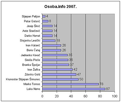 Naslovom Osoba.info za 2007. godinu po izboru čitatelja portala Križevci.info ovjenčao se mladi križevački motociklist Luka Nervo! Njega je do titule križevačke ličnosti godine dovezlo 87 portalskih glasova, odnosno 9 više od prvoga laureata Osobe.info, košarkaša Marka Tomasa. Lukin je trijumf tim veći što je ostvaren za godinu u kojoj je postao državni motociklistički prvak u klasi 125 SP, a zasigurno će mu okruniti i tjedan u kojem je proslavio rođendan. U trećem izboru Osoba.info za 16 je kandidata ostavljeno ukupno 536 glasova, od kojih je Nervo dakle osvojio 16.2%. Daleko ispod na trećem je mjestu predsjednik zlatnih gradskih glazbenika puhača Krunoslav Stijepan Šimunec s 50 glasova, te prošlogodišnja pobjednica Zdenka Gold, kojoj je glas dalo 47 čitatelja .