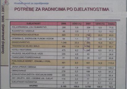 Hotelijeri nude i smještaj i hranu i osim kuhara traže i pomoćno osoblje poput spremačica i sobarica, a provjera kandidata za ljeto kreće već u zimskim mjesecima. Na području Koprivničko-križevačke županije 2007. godinu je bez posla završilo 6780 osoba, što je čak smanjenje u odnosu na prethodnu godinu, a sa stopom nezaposlenosti od 14.2 % ova je županija bolja i od hrvatskog prosjeka od 14.5 %, poruka je iz godišnje pregleda kretanja na tržištu rada Područne službe HZZ-a u Križevcima.