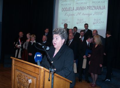 I. Konfic, kao druga dobitnica nagrade za životno djelo dosad, objasnila je da je za razliku od ostalih dobitnika priznanja, ona na kraju radnog vijeka, svodeći zahvalu na poantu – Odmori se, zaslužila si. Mješoviti zbor HPD Kalnik kojim je nekad ravnala i gđa Konfic u prigodnom je umjetničkom nastupu, praćen tamburaškim orkestrom Glazbene škole, otpjevao himničnu Zvona moga grada.