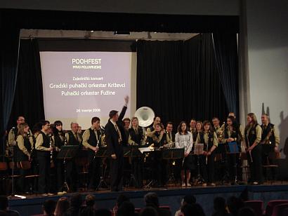 Koncertno gostovanje Puhačkog orkestra Fužine proteklog se vikenda, zahvaljujući domaćinu Gradskom puhačkom orkestru Križevci, pretvorio u dojmljivo dvodnevno druženje i prvoklasnu turističku promociju Križevaca i okolice gostima iz Gorskog kotara. Subotnjim koncertom obaju orkestara u Velikoj dvorani Hrvatskog doma održalo se tzv. Prvo poluvrijeme POOHFEST-a, festivala puhačkih orkestra koji su prošle godine pokrenuli križevački puhači.