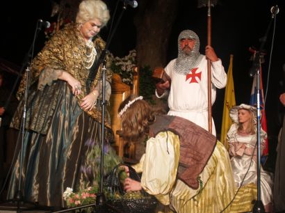 Zato je s bečkog dvora u pratnji svojih stražara došla sama carica i kraljica Marija Terezija, koja je podsjetila na 23. travnja 1752. kad je ujedinila Gornji i Donji Križevac i dala Križevcima novi grb. Publika je slušala i odvjetnika Željka pl. Husinca i završne riječi obrane križevačke travarice Magde Logomer Herucine, koju je carica pozvala u Beč gdje ju je 9. lipnja 1758. oslobodila od optužbi da je vještica, spasivši je od lomače. Za taj čin Marici Reziki pjesmom "Edelweiss" je zahvalila križevačka sopranistica Ana Fortuna.