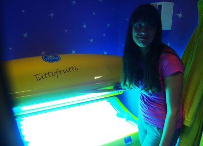 "To nije kao da vas netko pofarba, već tek kroz više izlaganja koža dobiva tamniju nijansu" – objašnjava Danijel Miklečić iz teretane Fit Gym u KTC-u, gdje minuta košta 2.50 kn u ležećem i 3 kn u stojećem solariju. I Miklečić, inače tjelograditelj, rado se posunča prije natjecanja, a kaže da to preporučuju i liječnici, osobito osobama s alergijama. Dobro je, dodaje, podići ten i pigmentaciju kože prije izlaganja pravome suncu.