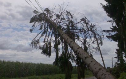 Sinoć između 22,29 i 23,13 sati oko 20.000 kućanstava na području Križevaca i okolice, drugi put u mjesec dana, ostalo je u mraku zbog udara groma u dva transformatora glavne trafostanice od 110/35 kilovolta. Zbog kvara grad je i danas prijepodne kratko bio bez struje. No, ovaj put je olujno nevrijeme počinilo veću štetu rušeći stabla i grane na elektrine vodove i prometnice, zbog čega su radnici križevačke Elektre cijelu prošlu noć i danas popravljali oštećene žice niskonaponske mreže, izjavio je Ivan Šafran, rukovoditelj pogona HEP-a.