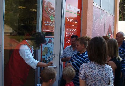 Pred vratima malog dućana u podne se stvorio red znatiželjnika koji su željeli vidjeti što ima za kupiti u najvećem domaćem lancu, koji su dosad viđali samo u drugim gradovima ili na reklamama.