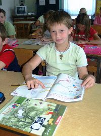Potporu u svladavanju brojki i slova daje joj i sestra Silvija, koja polazi 4. razred, a sjedi u posljednjem, 4. redu u istoj učionici. Učiteljica Nataša Marković tako u istoj smjeni predaje svoj djeci od 1. do 4. razreda jer je, zapravo, riječ o kombiniranom razrednom odjelu.