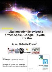 U četvrtak 4. prosinca u 19 sati u Podrumskoj dvorani Hrvatskog doma održat će se prvo u nizu znanstveno-popularnih predavanja u Križevcima i Zagrebu u organizaciji Križevačke pajdašije, a uz podršku Grada Križevaca. Na temu "Najinovativnije svjetske firme: Apple, Google, Toyota, … i zašto" govorit će dr.sc. Štefanija Šimunić, rođena Premzl, Zagrepčanka rodom iz Križevaca i pokretačica projekta "Križevci sutra" kojim će se pokušati potaknuti razvoj križevačke privrede novim idejama i konkurentnim pristupom.