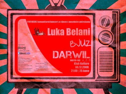 Tjedan dana nakon održanog koncerta križevačkog puhačkog orkestra za djecu s posebnim potrebama Križevaca i okolice, udruga P.O.I.N.T. s ponosom poziva na drugi ovogodišnji dobrotvorni koncert FIVE4KIDS. Ove subote 6. prosinca 2008. u Klubu kulture će se od 21 sat održati glazbena večer križevačkih autora, s tri skupine izvođača: grupa BJUZ s poznatim udaraljkašem Josipom Konficem, mladi kantautor Luka Belani s gostima te grupa DARWIL s kantautoricom Romanom Orešnik Mlinarić. Ulaznice se mogu kupiti pri ulasku u Klub za 25 kuna, a sav prihod namijenjen je nabavci božićnih darova i potrepština učenicima Centra za odgoj, obrazovanje i rehabilitaciju u Križevcima.