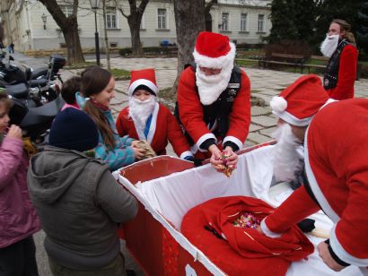 Ni jučer nije bilo kasno čestitati božićne blagdane, pa su to učinili i članovi križevačkog Moto kluba Crusaders, došavši na središnji križevački trg na motociklima i prerušeni u Djedove Mrazove. Iz svojih motorističkih bisaga izvadili su slatkiše kojima su počastili okupljenu djecu, koja su sa zanimanjem razgledala i njihove "sobove" na kotačima, među kojima je bio i atraktivni quad na četiri kotača.